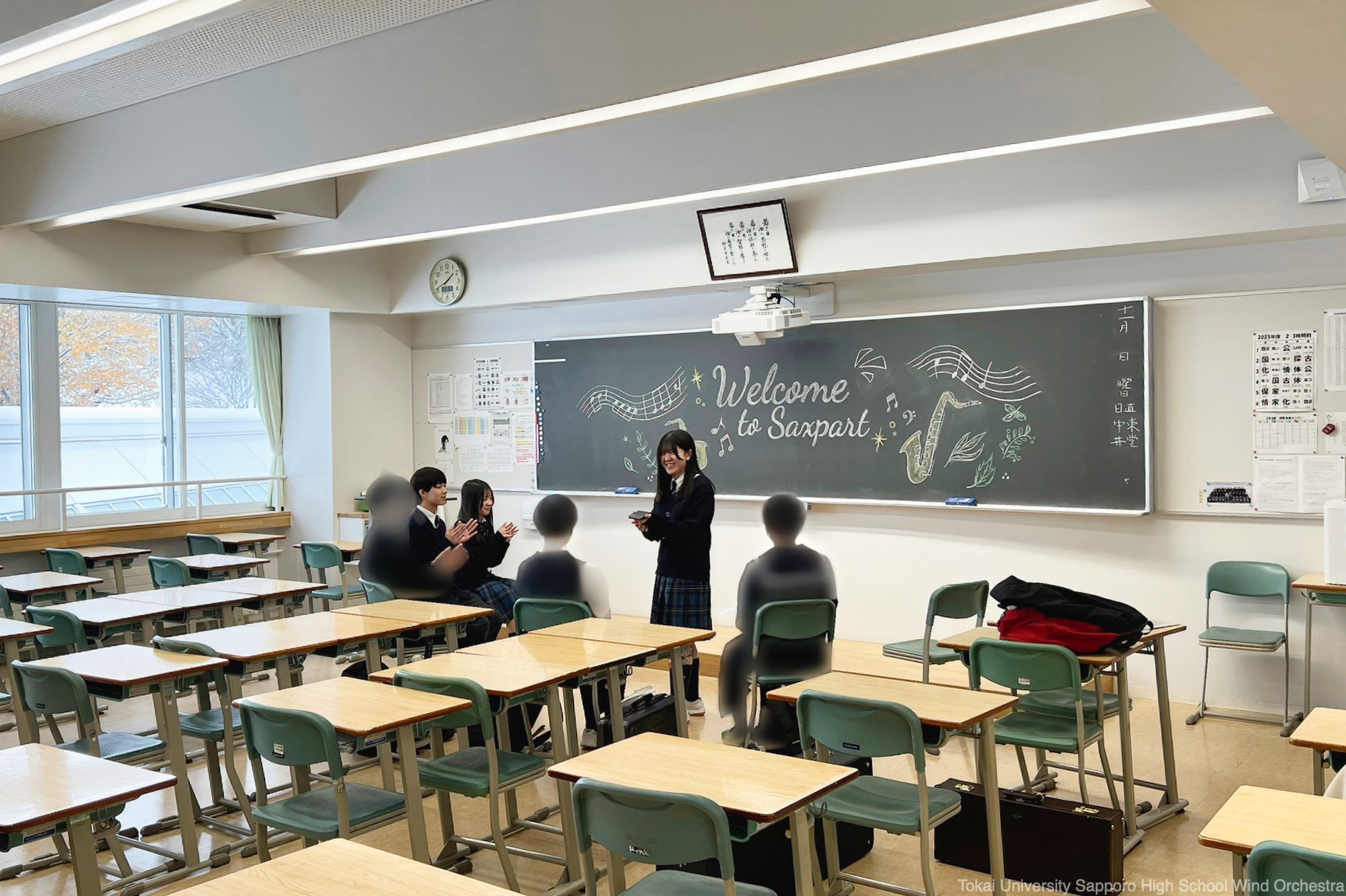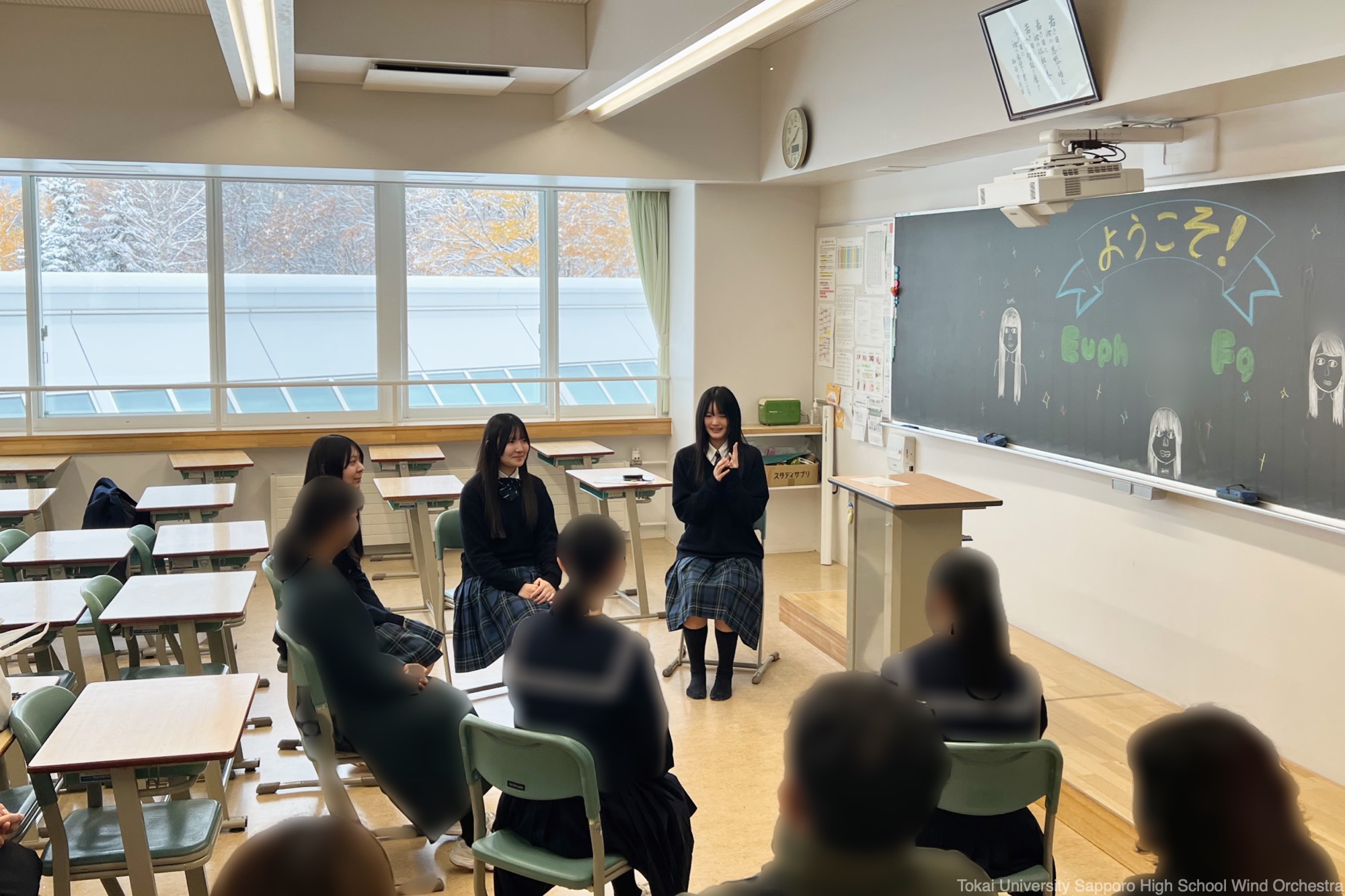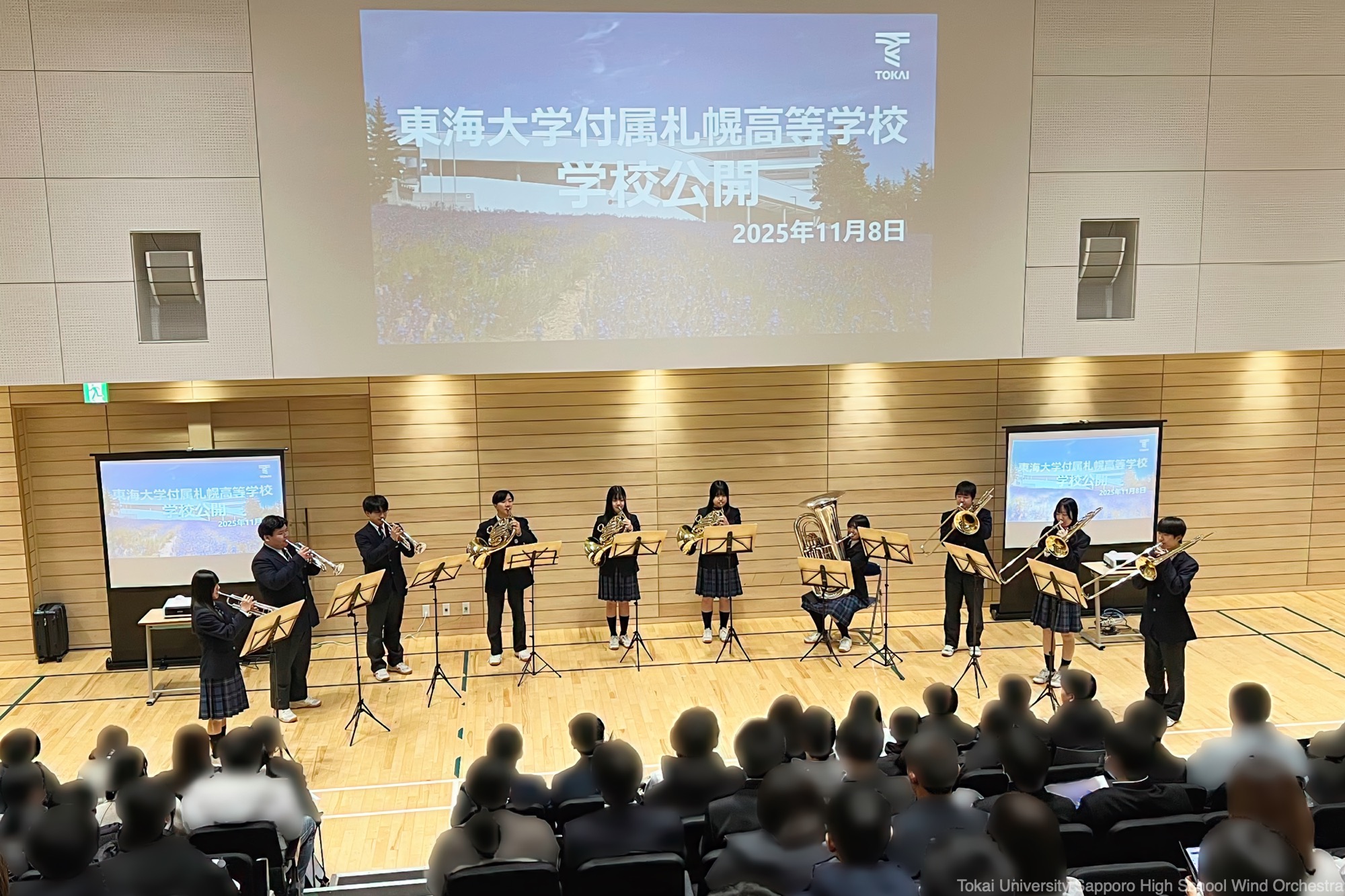 午前中の学校公開は金管セクションによるファンファーレで始まり、午後から部活動説明、パート交流、合同合奏を行いました。